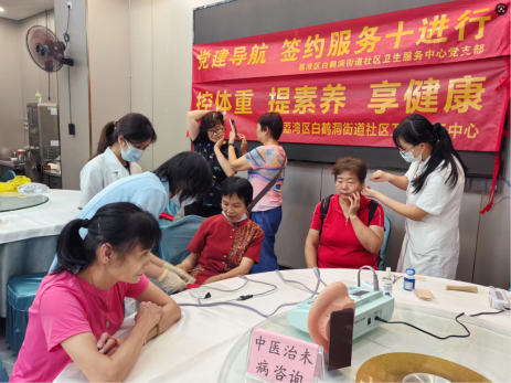 荔湾区白鹤洞街道社区卫生服务中心党支部以党建为引领,创新推出“党建+家庭医生签约服务”“党建+健康服务”双驱动模式,启动“党建导航,签约服务十进行”专项行动,组织党员骨干将健康服务延伸至机关、学校、企业、家庭等十大场景,切实破解了基层健康服务“最后一公里”难题。